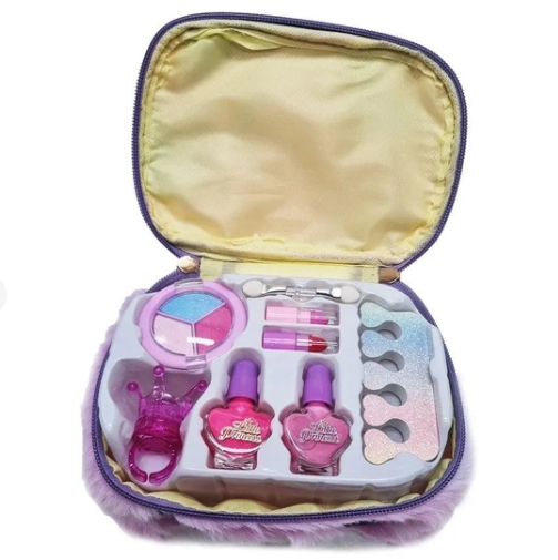 Різноманітність для творчого процесу: У наборі ви знайдете тіні для створення креативних образів, лаки для нігтів, пензлі для макіяжу, стильну косметичку, пудру, пилку та помаду - усе, що потрібно для ігрового макіяжу.