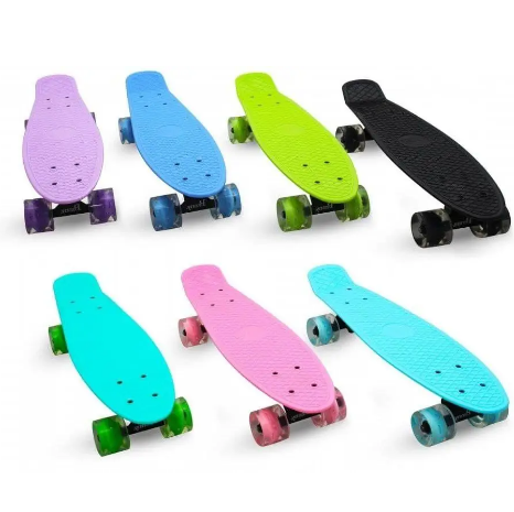 Скейтборд з легкістю поміститися у вас в рюкзаку, дека оснащена рельєфним малюнком, який не дозволить нозі зісковзнути. Якісна ходова виконана таким чином, що на пенніборді ви зможете не тільки кататися в прогулянковому режимі, а й також можете гнати по нерівних дорогах і виконувати екстремальні трюки завдяки кінцевому загину Single Kick. Пенніборд є чудовим подарунком, оскільки має ефектний вигляд, а особливі навички для катання на ньому не потрібні. За рахунок м'якого ходу і маневреності коліс, їзду на такому скейті легко і швидко опанує будь-хто початківець - як дорослий, так і дитина.